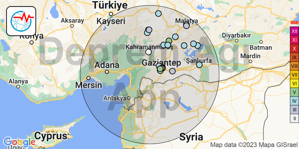 Earthquake at 73km from Latakya, Suriye. February 23, 2023 – 12:54 UTC Sismo News Team February 23, 2023 An earthquake was felt today, Thursday 23 February 2023, 12:54 UTC, at 73km from Latakya, Suriye. The earthquake has been reported by 151 users of the Earthquake Network app in a radius of 237km. Preliminary magnitude between 3.3 and 3.9. Post navigation Previous Previous post: Earthquake at 39km from Melipilla, Chile. February 23, 2023 – 10:31 UTCNext Next post: Earthquake at 3km from Antofagasta, Chile. February 23, 2023 – 13:08 UTC