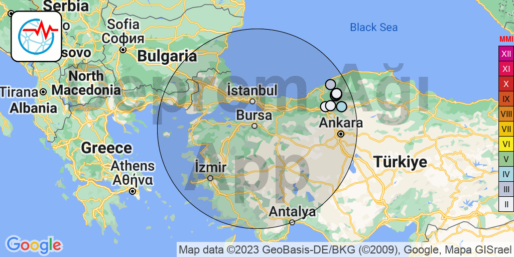 Earthquake at 1km from Balıkesir, Türkiye. April 1, 2023 – 21:55 UTC Sismo News Team April 1, 2023 An earthquake was felt today, Saturday 1 April 2023, 21:55 UTC, at 1km from Balıkesir, Türkiye. The earthquake has been reported by 126 users of the Earthquake Network app in a radius of 324km. Preliminary magnitude between 2.7 and 3.3. Post navigation Previous Previous post: Earthquake at 1km from Çankırı, Türkiye. April 1, 2023 – 21:29 UTCNext Next post: Earthquake at 42km from Malatya, Türkiye. April 2, 2023 – 01:42 UTC