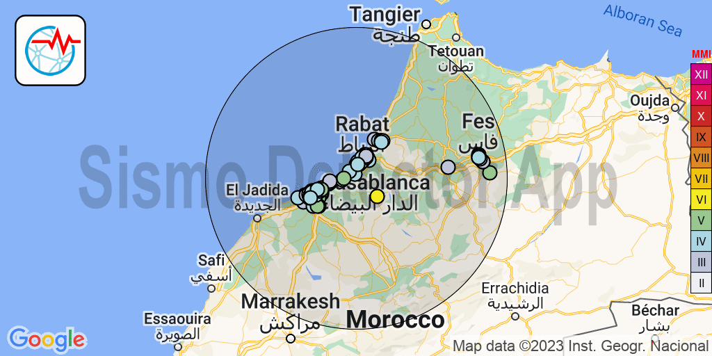 Earthquake at 3km from Fes, Morocco. September 8, 2023 – 23:52 UTC Sismo News Team September 9, 2023 An earthquake was felt today, Friday 8 September 2023, 23:52 UTC, at 3km from Fes, Morocco. The earthquake has been reported by 394 users of the Earthquake Network app in a radius of 198km. Preliminary magnitude between 2.7 and 3.3. Post navigation Previous Previous post: Earthquake at 8km from Rabat, Morocco. September 8, 2023 – 23:30 UTCNext Next post: Earthquake at 4km from Rabat, Morocco. September 9, 2023 – 00:19 UTC